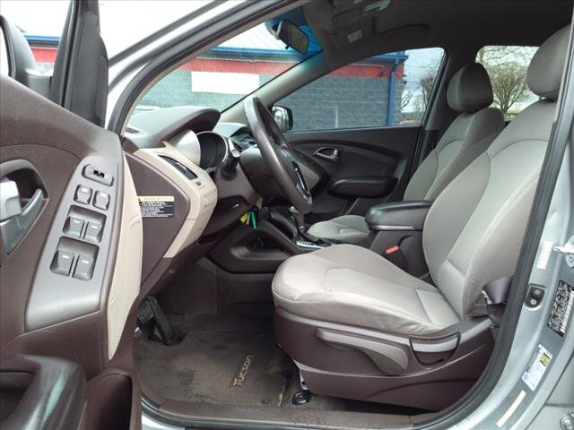 Bright Diamond Silver exterior with a warm Tan interior — this clean 2015 Hyundai Tucson GLS is powered by a dependable 2.0L I4 (164 hp, 151 lb-ft) and has under 115,000 miles (averaging under 10,000/year). It returns 21 MPG city and 25 MPG highway and is in excellent overall condition. Factory-equipped with a smooth automatic transmission and front-wheel drive, this GLS comes standard with air conditioning, comfortable cloth seating, 60/40 split-folding rear seats, power windows and door locks, remote keyless entry, cruise control, tilt/telescoping steering wheel with audio and phone controls, AM/FM/CD with AUX/USB and Bluetooth audio/phone, and alloy wheels. Safety features include ABS, electronic stability and traction control, multiple airbags (front, side and curtain), tire pressure monitoring and LATCH child-seat anchors for peace of mind.