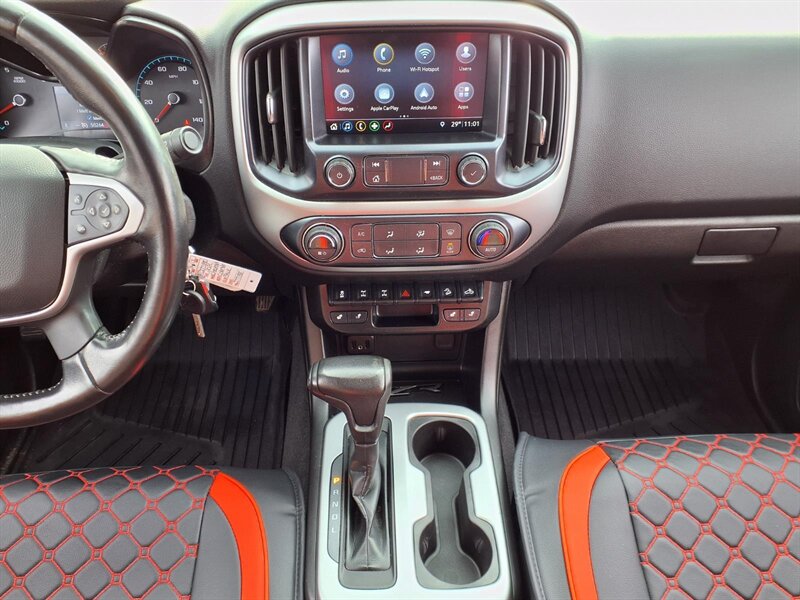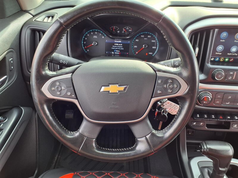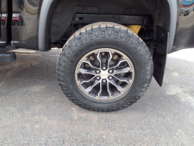 Factory-built to attack off-road: Multimatic DSSV dampers, raised ZR2 suspension and wider track, factory front and rear electronic locking differentials, heavy-duty skid plates, ZR2-specific bumpers and flared wheel arches on 17-inch alloy wheels with all-terrain tires. Stock tech and convenience include an 8-inch Chevrolet Infotainment touchscreen with Apple CarPlay/Android Auto, Bluetooth and USB ports, backup camera, steering-wheel controls, automatic climate control and cruise. Safety basics are factory-installed—ABS, stability/traction control, multiple airbags and hill descent control. Ready to dominate.