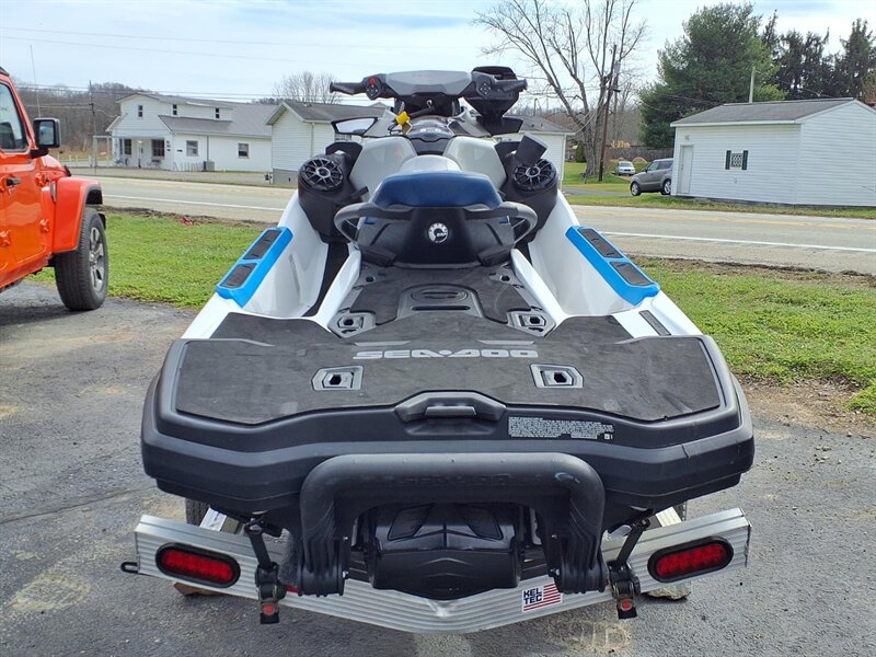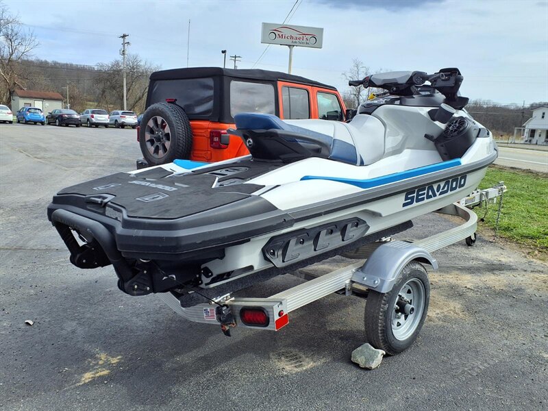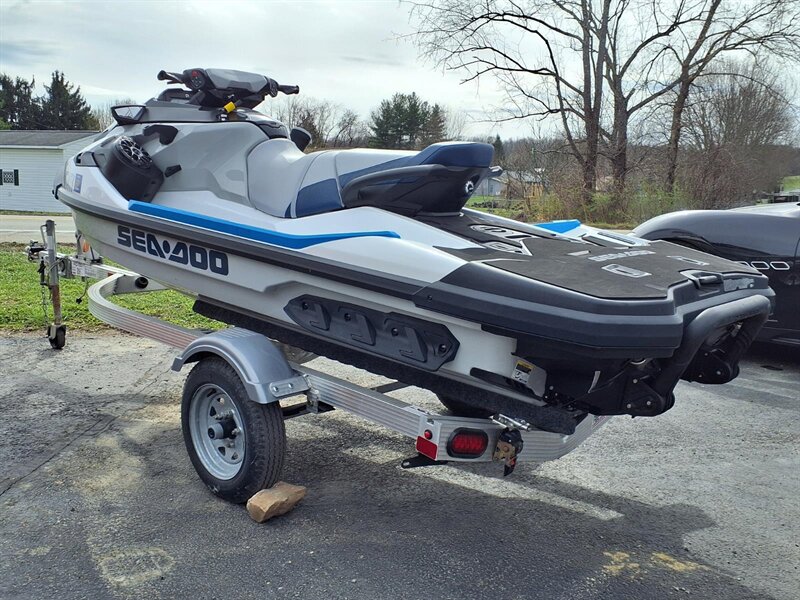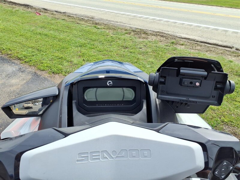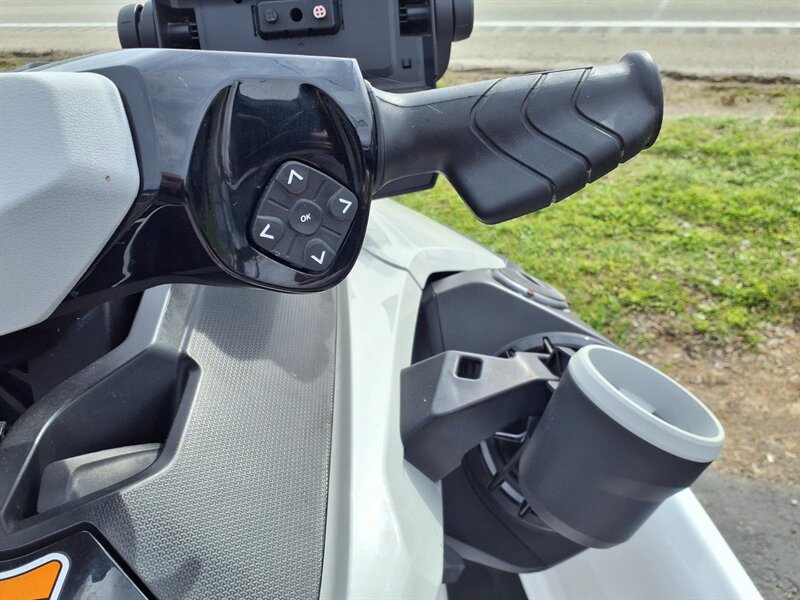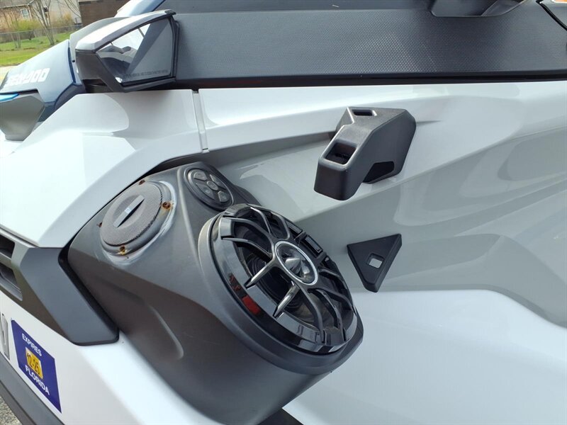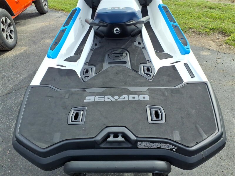Factory features you’ll appreciate: - Powerful, responsive Rotax-powered performance: the factory drivetrain delivers the kind of acceleration and midrange punch you want for towing, cruising or carving between wakes — smooth, predictable power for both relaxed and sporty outings. - Intelligent Brake & Reverse (iBR): industry-leading electronic braking and reverse give you precise stopping and effortless low-speed maneuvering for safe docking and easy handling in close quarters. - Intelligent Throttle Control (iTC) with multiple ride modes: switch between fuel-sipping ECO mode, comfortable TOURING and sharper SPORT response to match your mood or conditions. - Ergonomic rider comfort: Sea-Doo’s signature Ergolock seat design keeps the rider securely planted while the roomy, comfortable seating accommodates passengers for all-day comfort. - Large swim platform and reboarding ladder: extra-big rear platform makes lakeside lounging a breeze, and the integrated reboarding ladder means getting back aboard is quick and simple. - LinQ quick-attach capability: factory-ready rear LinQ mounting lets you add BRP’s modular accessories (coolers, cargo, fuel caddies, etc.) quickly and securely for more gear and longer days. - Ample watertight storage: generous bow locker and under-seat storage provide room for lifejackets, tow ropes and essentials, plus convenient glove box and phone storage with charging access to keep devices safe and dry. - Easy-to-read digital gauge cluster: clear instruments show speed, fuel, trim and other trip info at a glance — intuitive controls put everything within reach for a relaxed, confidence-inspiring ride. - D.E.S.S. (Digitally Encoded Security System): factory security key helps protect your craft when it’s parked or stored. - Robust hull design and ride comfort: Sea-Doo’s hull engineering gives confident cornering, predictable tracking and a comfortable ride through chop and wakes — excellent for families, tow sports and day cruising alike. - Practical hardware: factory tow eye, recessed cleats and durable rub rails make boating chores easier and protect the craft during everyday use.
